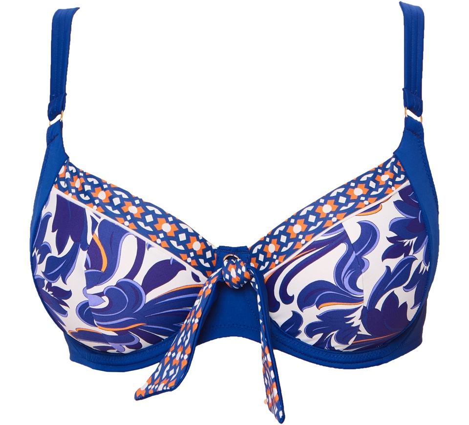 Бюстгальтер купальный серия Итальянская Ривьера с мягкими чашками, боковая корректирующая деталь на каркасах. Выполнен из фактурного эластичного полотна. Задняя часть бретелей съёмная, можно застегнуть крест на крест или завязать через шею .