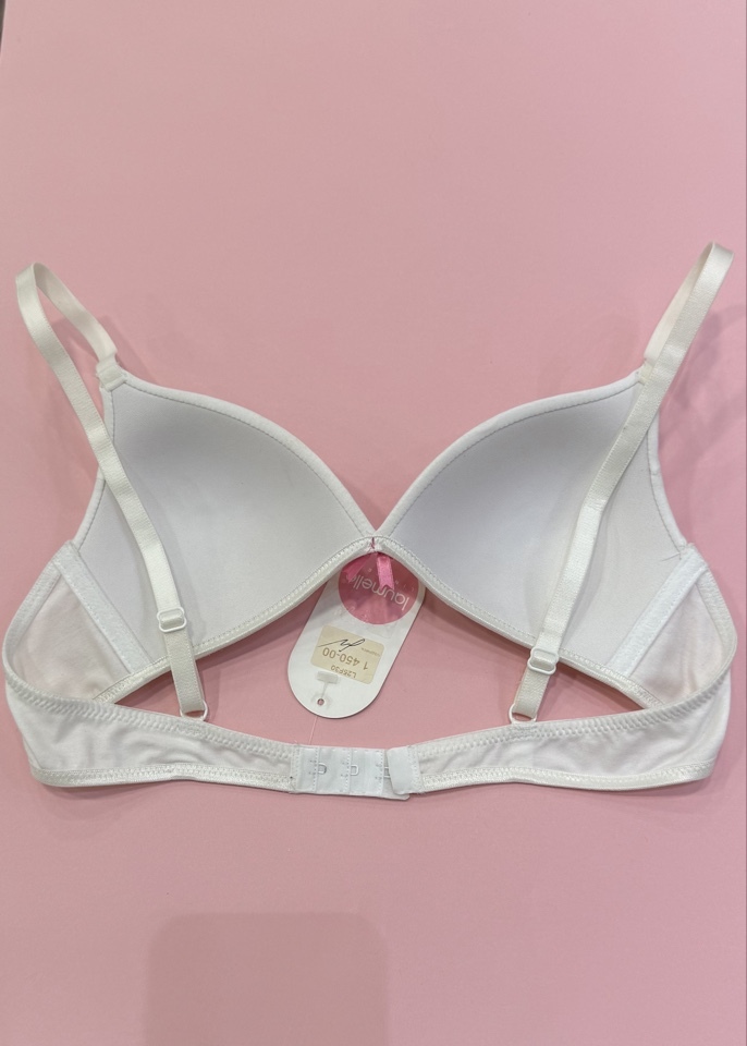 Бюстальтер с тонкой формованной чашкой без каркасов. Верх чашек и стан выполнены из хлопкового полотна. Однорядная застежка. Идеальный вариант для девочек в качестве первого бюстгальтера.