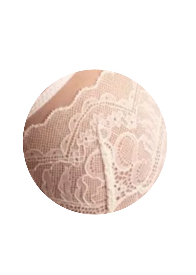 Бюстгальтер с мягкими чашками из эластичного кружева на каркасах, сечение чашек в виде вертикального шва. Чашки на подкладке из неэластичного сетчатого полотна. По верхнему срезу обработаны жилкой для наилучшего прилегания к груди. Стан из эластичного трикотажного полотна.