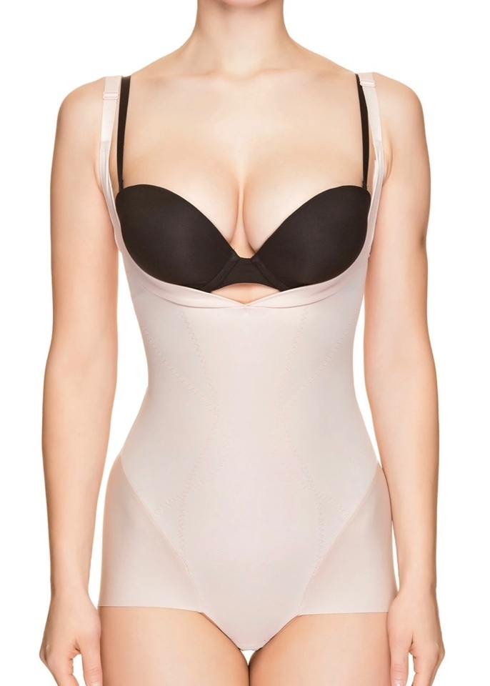 Корректирующее боди с открытым лифом. Боди с корректирующим эффектом из коллекции Perfect Classic. Выполнено из плотного функционального материала. Дополнительная подкладка для формирования талии, уменьшения живота и поддержки спины. Часть трусиков по бокам и сзади изготовлена из плотного материала с лазерной обрезкой края. Застежка в зоне ластовицы. Бретели с регулировкой длины. Модель усиленно корректирует фигуру в области талии, живота и бедер.
