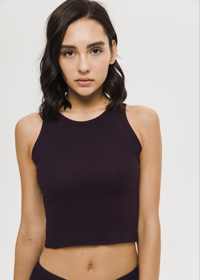 Топ укороченный, выполнен из эластичного хлопкового полотна в рубчик (рибана).