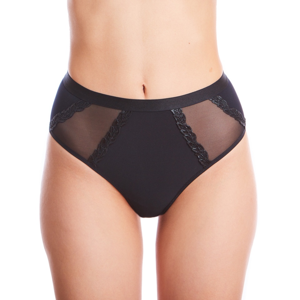 Трусы танга с высокой линией талии серия "Гламурный шик". Задняя деталь из сетки всгиб. Использование супертехнологичной вышивки с ламинацией под кожу придает модели уникальность и современный вид. Ламинация, играющая цветами и блеском, добавляет динамики и глубины.